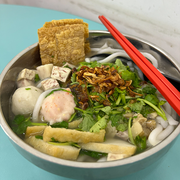 Taro Mee is a noodle dish that features a thick, creamy taro (yam) gravy made from mashed taro cooked with broth.